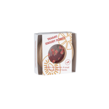 Nuestro nuevo juguete sensorial encantará a los pequeños más golosos. Es un sonajero de madera con forma de donut, ideal para que sus manos lo manipulen con comodidad. En su interior, podréis identificar figuras de frutas y verduras, que al agitarse desatan el irresistible sonido marca de la casa. Aunque apetece comérselo, está hecho de madera de haya natural, libre de tóxicos y a prueba de mordiscos.