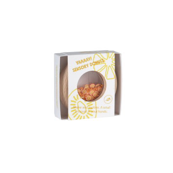 Nuestro nuevo juguete sensorial encantará a los pequeños más golosos. Es un sonajero de madera con forma de donut, ideal para que sus manos lo manipulen con comodidad. En su interior, podréis identificar figuras de frutas y verduras, que al agitarse desatan el irresistible sonido marca de la casa. Aunque apetece comérselo, está hecho de madera de haya natural, libre de tóxicos y a prueba de mordiscos.