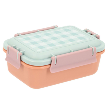 Características Material: Polipropileno, sin BPA ni ftalatos ni PVC. Junta de silicona para sellar Medidas caja bento: ancho 18cm x alto 7cm x fondo 12cm Medidas cajita fruta: ancho 10.5cm x alto 5cm x fondo 7cm Capacidad bento: 900ml Largo tenedor: 10cm Tenedor incluido Tapa con 4 cierres de clic para fijar fácilmente El bento es hermético, la cajita de fruta no Apto para congelador y lavavajillas (lavar en bandeja superior hasta 40º máximo) Se puede meter en microondas sin la tapa