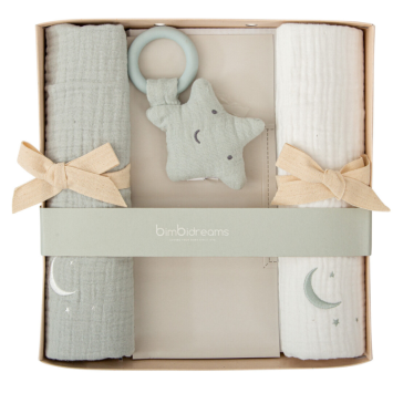 SET DE REGALO GASAS BORDADAS Y ESTRELLA MORDEDOR MATALASSE MENTA