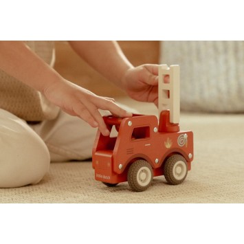 ¡Bomberos listos! Apaga el fuego y salva el día con este robusto camión de bomberos de madera. La escalera móvil facilita cualquier misión de rescate, mientras que las ruedas de goma garantizan un desplazamiento suave. Ayuda a los animales a bajar de los árboles altos y asegúrate de que todos estén a salvo. El set incluye un valiente bombero siempre listo para ayudar. ¡Perfecto para combinar con la estación de bomberos y disfrutar de aún más acción!