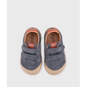 Deportivos de piel casual de concepto barefoot, cero drop, flexible y blandito, plantilla extraíble y cierre adherente para mayor ajuste y autonomía.