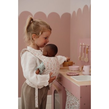Embárcate en una aventura con este cómodo portamuñecas y lleva a tu bebé a todas partes. Las correas de hombro ajustables y acolchadas y el resistente cinturón lumbar garantizan que tu muñeca esté sentada de forma segura y cómoda. Lleva a tu muñeca cerca de ti o mirando hacia delante, según tus preferencias. Diseñado con el suave y dulce estampado Soft Flowers para un look elegante. Ideal para juegos de rol e imitar el cuidado de bebés reales, manteniendo las manos libres.