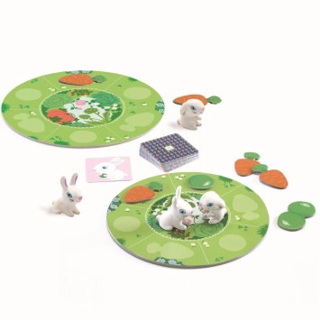 En Little Collect cada jugador coge un tablero y lo coloca delante suyo. Las cartas se barajan y se colocan en un mazo boca abajo. Las 6 fichas zanahorias, los 6 guisantes y los 6 conejos se colocan también al centro. El primer jugador, coge una carta del montón y realiza la acción correspondiente. ¡El primer jugador en tener su tablero completo gana!