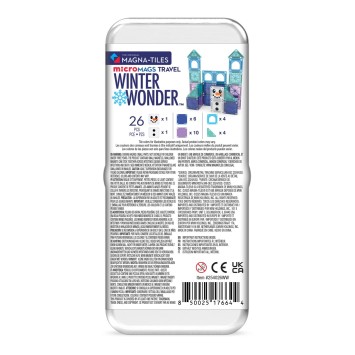 TRAVEL SETS (microMAGS) WINTER WONDERLAND EDICIÓN LIMITADA. Las cosas buenas vienen en cajitas pequeñas, especialmente si estas se pueden reutilizar tanto para almacenar como para construir sobre la marcha. La línea microMAGS de MAGNA-TILES® es la siguiente evolución en la construcción magnética y también es 100 % compatible con todas las piezas MAGNA-TILES® anteriores. Estas piezas más pequeñas son geniales para jugar a solas y también brindan detalles adicionales a las construcciones de los niños con los sets MAGNA-TILES® existentes. Experimenta el gran potencial de llevar la creatividad, el aprendizaje, el desarrollo y la imaginación a cualquier parte, con el poder de una pieza portátil que es un 75 % más pequeña que las piezas tradicionales.
