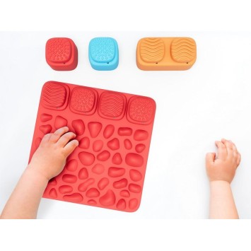 Incluye: 4 alfombrillas de colores, 16 bloques sensoriales Material: plástico (PAP) suave y flexible Medidas suelos: 20 x 20 cm Medidas bloques: 5 x 5 cm Cada alfombrilla presenta diferentes texturas Perfectos para poner a prueba el equilibrio,fortalecer los músculos y fomentar la motricidad Se pueden mojar (temperatura máxima 30ºC) Uso recomendado de 6 a 36 meses