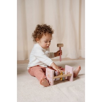 ¡Toc, toc, toc! Usa el mazo para golpear las 6 clavijas de colores en el banco de madera y explora la magia del Jardín de las Hadas. ¿Terminaste de golpear? ¡Gira el banco y comienza de nuevo! Este es un muy buen ejercicio para el desarrollo de las habilidades motoras que seguramente mantendrá a tu pequeño entretenido por un rato.