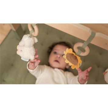 ¡Arriba esos pequeños bracitos! Los bebés curiosos pasarán un buen rato con este Baby Gym de Little Dutch. Contiene 3 diferentes juguetes de actividades para un mayor entretenimientos, la alegre oveja, una bonita gallina y una colorida flor. El gimnasio desarrolla la coordinación ojo-mano, mejora las habilidades motoras y estimula los sentidos cada vez que tu bebé intenta alcanzar uno de los juguetes colgantes.