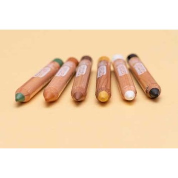 VERDE-NARANJA-MARRÓN-DORADO-BLANCO-NEGRO Pack de 6 lápices de maquillaje de Namaki con los que decorar la cara y el cuerpo de los peques para sus fiestas de disfraces preferidas.