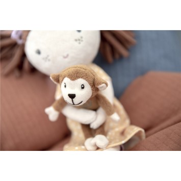 ¡Hola! Mi nombre es Sophia y soy tu nueva amiga. Con el monito en una mano y tú en la otra, podemos lograr cualquier cosa. ¡Nos mantenemos fuertes juntos!