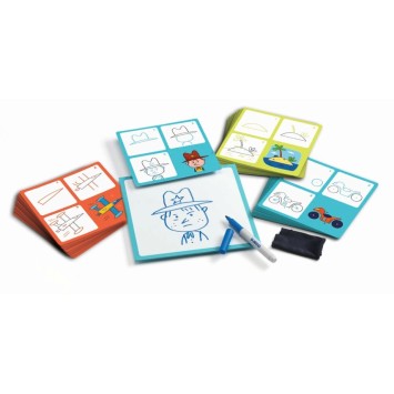 Las 24 cartas que contiene este juego tienen distintos dibujos que los peques deberán reproducir con la mayor exactitud posible. Podrán intentarlo tantas veces como deseen porque lo harán sobre la pizarra borrable que también viene incluida en el juego. ¡Es genial!