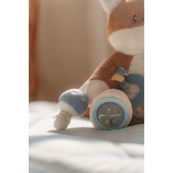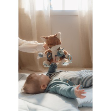 ¡Abrazos y juegos! Este adorable zorro promete mucho más que abrazos. Descubre todas las actividades divertidas que esconde. Tiene un escarabajo crujiente en el hombro, un sonido de cascabel, etiquetas, una bellota y un hongo para tocar y sentir. Los anillos alrededor de la pierna, el espejo en un pie... son tantos detalles que despertarán la curiosidad de tu pequeño. Y después de todo ese juego, el adorable zorro inspira los sueños más dulces sobre un bosque encantado donde juegan los Forest Friends.