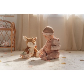 ¡Abrazos y juegos! Este adorable ciervo promete mucho más que abrazos. Descubre todas las actividades divertidas que esconde. Tiene una mariposa que se arruga en el hombro, un sonido de cascabel y etiquetas y flores para tocar y sentir. Los anillos alrededor de la pierna, el espejo en un pie... son tantos detalles que despertarán la curiosidad de tu pequeño. Y después de todo ese juego, el adorable ciervo inspira los sueños más dulces sobre un jardín de hadas.