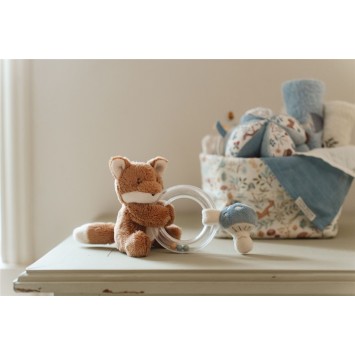 ¡Agarra, gira y sacude! El adorable zorro con su suave pelaje y su pequeña cola te invita a jugar y a poner en movimiento este sonajero. También ha elegido un pequeño hongo para que lo acaricies. El anillo transparente contiene 3 pequeñas cuentas de colores que empiezan a sonar cuando tu bebé juega con este divertido juguete. El sonajero no solo despierta la curiosidad y los sentidos de tu bebé, sino que también mejora la coordinación mano-ojo.