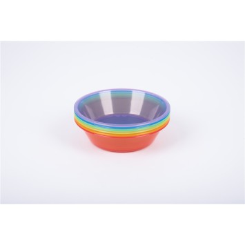 El juego incluye: 6 cuencos en 6 colores (rojo, naranja, amarillo, verde, azul, morado). Tamaño: Alto 4,5 cm x 14,5 cm de diámetro. Edad: Apto a partir de 18 meses